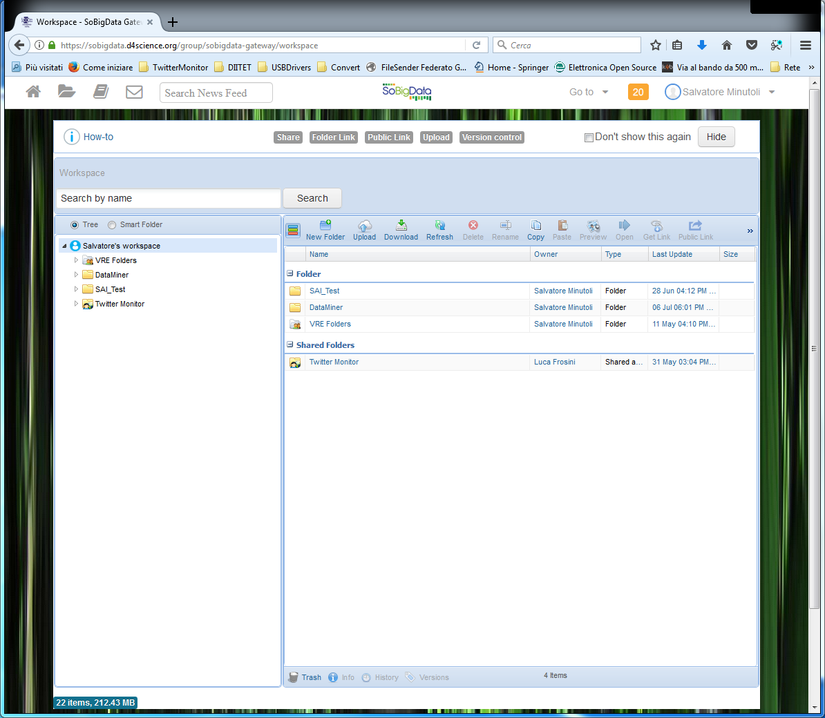http://data-d.d4science.org/SmNVcEp0aHZORG1zSjRKT2orZ3RaZjdJTzc5OHNuQzZHbWJQNStIS0N6Yz0Using the links I can download the files but I don't see the files and folders in my workspace.