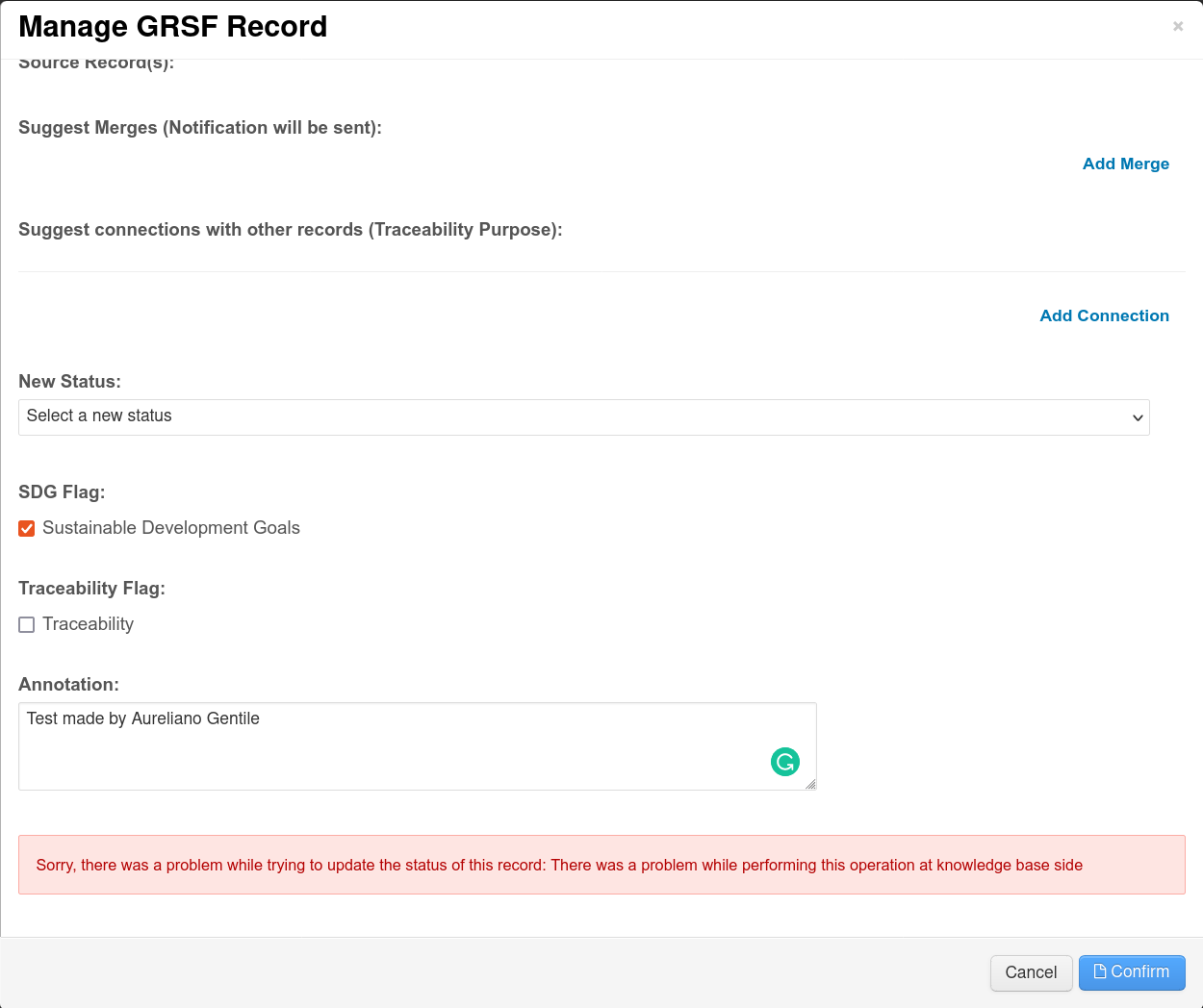 I have just updated, tested and redeployed the service responsible for managing GRSF records using the GRSF management panel for GRSF Admin.